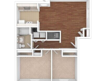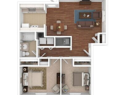 Our Braeburn floor plan features two spacious bedrooms, open living area, and plenty of storage space.